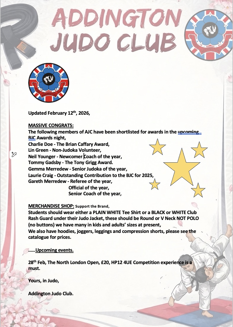 Welcome to the Addington Judo Club's PDF Viewer. Here, we provide various pages for reference of our students. Take the information for educational purposes. These resources are useful for current members, potential members, and parents alike.
